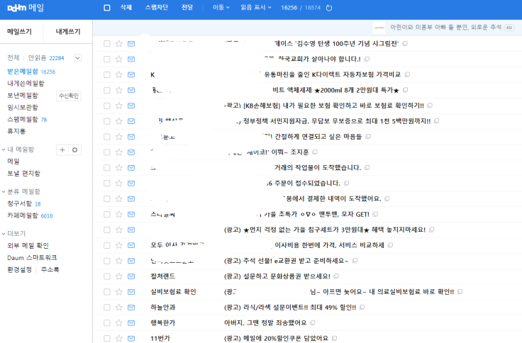 지금은 한메일보다는 네이버를 더 많이 사용하시지만 아직도 다음 메일이 친숙해서 사용하시는 분들이 많으십니다.